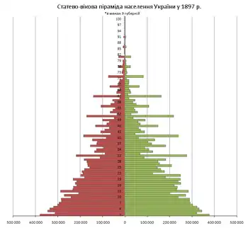 The figures below refer to the nine governorates of the Russian Empire (Volhynia, Yekaterinoslav, Kiev, Podolia, Poltava, Taurida, Kharkov, Kherson and Chernigov) with a Ukrainian majority.[34]