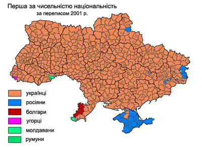 | Major ethnic | Ukrainians (77.8%) 2001[2] |