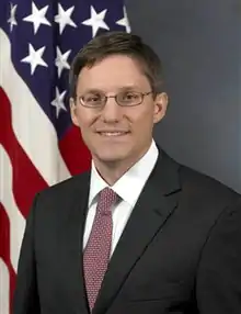 Derek Chollet is an American foreign policy advisor and author currently serving as the Counselor of the United States Department of State. Previously, Chollet was the Executive Vice President for security and defense policy at the German Marshall Fund of the United States.[1][2] From 2012 to 2015, Chollet was the Assistant Secretary of Defense for International Security Affairs, where he managed U.S. defense policy involving Europe, NATO, the Middle East, Africa, and the Western Hemisphere for Secretaries Leon Panetta and Chuck Hagel.[3]