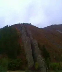 Devil's Slide is a geological formation located near the border of Wyoming in northern Utah's Weber Canyon, near the community of Croydon in Morgan County, Utah, United States. The slide consists of two parallel limestone strata that have been tilted to lie vertical, protruding 40 feet (12 m) out of the mountainside. Intervening layers have eroded more quickly, forming a channel some 8 feet (2.4 m) wide running hundreds of feet down the mountain.[1]