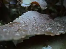 Dew is water in the form of droplets that appears on thin, exposed objects in the morning or evening due to condensation.[1]