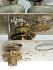 Non-automotive uses of differentials include performing analog arithmetic. Two of the differential's three shafts are made to rotate through angles that represent (are proportional to) two numbers, and the angle of the third shaft's rotation represents the sum or difference of the two input numbers. The earliest known use of a differential gear is in the Antikythera mechanism, circa 80 BCE, which used a differential gear to control a small sphere representing the moon from the difference between the sun and moon position pointers. The ball was painted black and white in hemispheres, and graphically showed the phase of the moon at a particular point in time.[1] An equation clock that used a differential for addition was made in 1720. In the 20th Century, large assemblies of many differentials were used as analog computers, calculating, for example, the direction in which a gun should be aimed. However, the development of electronic digital computers has made these uses of differentials obsolete. Military uses may still exist, for example, for a hypothetical computer designed to survive an electromagnetic pulse. Practically all the differentials that are now made are used in automobiles and similar vehicles including offroad vehicles such as ATVs.