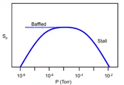 Diffusion pumps use a high speed jet of vapor to direct gas molecules in the pump throat down into the bottom of the pump and out the exhaust. They were the first type of high vacuum pumps operating in the regime of free molecular flow, where the movement of the gas molecules can be better understood as diffusion than by conventional fluid dynamics. Invented in 1915 by Wolfgang Gaede, he named it a diffusion pump since his design was based on the finding that gas cannot diffuse against the vapor stream, but will be carried with it to the exhaust.[1] However, the principle of operation might be more precisely described as gas-jet pump, since diffusion plays a role also in other high vacuum pumps. In modern textbooks, the diffusion pump is categorized as a momentum transfer pump.