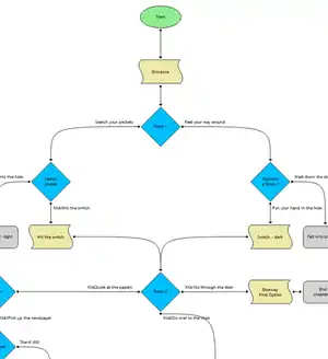 Each digital conversation is made up of a dialogue based script consisting of a narrative and choices with pathways that lead to Outcomes. It is the user, through their choices, who decides which pathway to follow. The script takes the form of a Decision-Tree and is the backbone of the digital conversation. Each Decision-Tree defines two or more Pathways. The end point of a Pathway is an Outcome or a loosely coupled Link to another digital conversation enabling longer digital conversation flows.