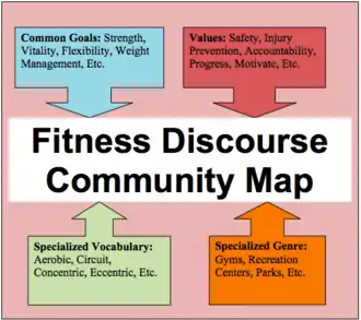 One tool that is commonly used for designing a discourse community is a map. The map could provide the common goals, values, specialized vocabulary and specialized genre of the discourse community. This tool may be presented to all members as a mission statement. As a new generation of members enter into a discourse community, new interests may appear. What was originally mapped out may be recreated to accommodate any updated interests.[7] The way in which a discourse community is designed, ultimately controls the way in which the community functions. A discourse community differs from any other type of grouping because the design will either constrain or enable participants.[8]
