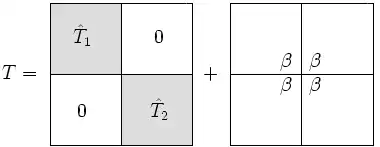 We write as a block diagonal matrix, plus a rank-1 correction: