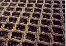 The next stage in dry ski slope development came with the brush industry. The most common material is Dendix[1] which is a by-product of brush manufacturing and is similar to a short-haired brush with the bristles sticking upwards. Dendix is manufactured in Chepstow, however it can be found on slopes throughout the world.[2] It is arranged in a hexagonal pattern of approximately 1-inch (25 mm) strips of bristles in a 4 in (100 mm) hexagon. Although it was a significant advancement from previous surfaces, concern over damage to slope users (it provides little or no impact protection to a slope user when falling) and ski or snowboard damage due to friction meant litigation for slopes using it was a constant threat. Nowadays water is often sprayed onto the surface of the dendix to lubricate it and increase speed; however, higher insurance premiums cause many slope operators to look for safer alternatives.[3]