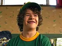 Dustin Henderson is a fictional character from the Netflix television show Stranger Things, portrayed by Gaten Matarazzo.[1] The character is depicted as a friend of Mike Wheeler, Lucas Sinclair and Will Byers. When Will goes missing, Dustin, Mike and Lucas go looking for their missing friend and come across Eleven, who helps search for Will using her telekinetic abilities. In the second season of the show, Dustin forms a strong friendship with Steve Harrington, a relationship that received positive acclaim from fans and critics.[2] Dustin is also depicted as having cleidocranial dysplasia, a condition written into the character after Matarazzo's casting.[3]