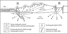One hypothesis involves intense electric fields created piezoelectrically by tectonic movements of rocks containing quartz.[20]