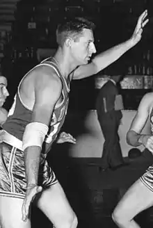 ![]() Mikan during a Boston Celtics practice, c. 1953 | |