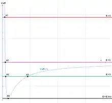 Effective potential. E> 0 hyperbola and A1 is pericentrum, E = 0 parabola and A2 is pericentrum, E <0 ellipse and A3 is pericentrum A3' is apocentrum, E=Emin circle and A4 is radius. Points A1, ..., A4 are called turning points.