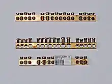 • Wood mouldings with grooves cut for single conductor wires, covered by a wooden cap strip. These were prohibited in North American electrical codes by 1928. Wooden moulding was also used to some degree in the UK, but was never permitted by German and Austrian rules.[21]