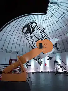 Embry-Riddle Observatory, originally known as Embry-Riddle Creekside Observatory, began in a Technical Innovations Pro-Dome 15 feet (4.6 m) dome located between the Lehman Engineering Building and a creek that ran through campus. In 2012, Embry-Riddle broke ground on the new 140,000 sq-ft College of Arts and Sciences building which included a 30.5 feet (9.3 m) Ash Dome on the roof.[1] Upon completion of the building, existing telescopes were moved from the Creekside Observatory to the new building and the university installed a new 1-meter Ritchey–Chrétien telescope in June, 2014.[2]