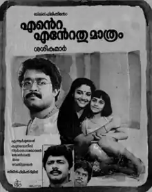 Ente Entethu Mathrem (transl. Mine, mine alone) is a 1986 Indian Malayalam family drama film directed by J. Sasikumar and written by Kaloor Dennis from a story by A. R. Mukesh. The film stars Mohanlal, Karthika, Baby Shalini and Lalu Alex. The film has music composed by Johnson.[1][2][3]