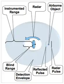 Non-Doppler radar are blind for the duration of the transmit pulse.