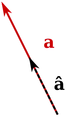 A unit vector is any vector with a length of one; normally unit vectors are used simply to indicate direction. A vector of arbitrary length can be divided by its length to create a unit vector.[17] This is known as normalizing a vector. A unit vector is often indicated with a hat as in â.