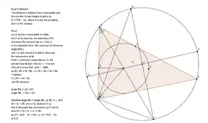 In geometry, Euler's theorem states that the distance d between the circumcentre and incentre of a triangle is given by[1][2]