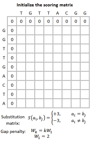 - This step uses a banded Smith–Waterman algorithm to create an optimised score (opt) for each alignment of query sequence to a database(library) sequence. It takes a band of 32 residues centered on the init1 region of step2 for calculating the optimal alignment. After all sequences are searched the program plots the initial scores of each database sequence in a histogram, and calculates the statistical significance of the "opt" score. For protein sequences, the final alignment is produced using a full Smith–Waterman alignment. For DNA sequences, a banded alignment is provided.