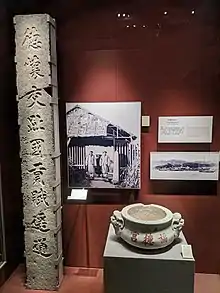 The site of the Chinese Customs Station, a declared monument of Hong Kong, is located in the northwestern part of Fat Tong Chau.[1] Archaeological finds from the site are being exhibited at Hong Kong Museum of History, including the "Foster benevolence over Indo-China; tributes and taxes circulate from afar" stone tablet.[2]