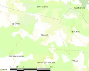 Felluns is located in the canton of La Vallée de l'Agly and in the arrondissement of Prades.