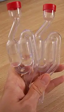 Pasteur also experimented with the mechanisms of brewer's yeast in the absence of organic nitrogen.[6] By adding pure brewer's yeast to a solution of cane sugar, ammonium salt, and yeast ash, Pasteur was able to observe the alcoholic fermentation process with all of its usual byproducts: glycerin, succinic acid, and small amounts of cellulose and fatty matters.[6] However, if any of the ingredients were removed from the solution, no fermentation would occur. To Pasteur, this was proof that yeast required the nitrogen, minerals, and carbon from the medium for its metabolic processes, releasing carbonic acid and ethyl alcohol as byproducts.[5][6] This also disproved Liebig's theory, since there was no albuminous matter present in the medium; the decomposition of the yeast was not the driving force for the observed fermentation.[5][6]