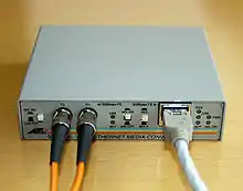 A fiber media converter is a simple networking device that makes it possible to connect two dissimilar media types such as twisted pair with fiber optic cabling. They were introduced to the industry in the 1990s, and are important in interconnecting fiber optic cabling-based systems with existing copper-based, structured cabling systems. They are also used in metropolitan area network (MAN) access and data transport services to enterprise customers.