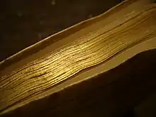 Early codices, such as Coptic bindings had relatively simple finishing, including blind tooling and leather strips woven through covering material.