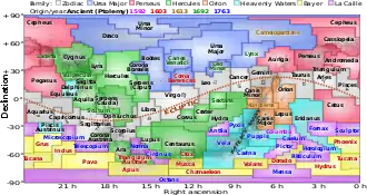 The First Point of Aries is important to the fields of astronomy, nautical navigation and astrology. Navigational ephemeris tables record the geographic position of the First Point of Aries as the reference for position of navigational stars. Due to the slow precession of the equinoxes, the zenith view (above a location) of constellations at a time of year from a given location have slowly moved west (by using solar epochs the drift is known). The tropical Zodiac is similarly affected and no longer corresponds with the constellations (the Cusp of Libra today is located within Virgo). In sidereal astrology, by contrast, the first point of Aries remains aligned with the Aries constellation.