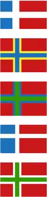 The former flag of Orkney was adopted in 1995. In 2001, the flag of Orkney, the traditional flag of St Magnus, was declined official recognition by the Lord Lyon, the heraldic authority of Scotland, due to similarity with other national flags;[5] as well as the flag of the Kalmar Union[6]