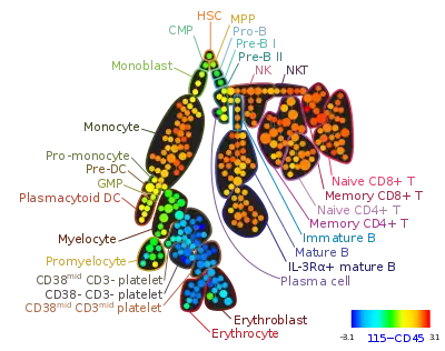 - Qian, Y.; Wei, C.; Eun-Hyung Lee, F.; Campbell, J.; Halliley, J.; Lee, J. A.; Cai, J.; Kong, Y. M.; Sadat, E.; Thomson, E.; Dunn, P.; Seegmiller, A. C.; Karandikar, N. J.; Tipton, C. M.; Mosmann, T.; Sanz, I. A.; Scheuermann, R. H. (2010). "Elucidation of seventeen human peripheral blood B-cell subsets and quantification of the tetanus response using a density-based method for the automated identification of cell populations in multidimensional flow cytometry data". Cytometry Part B. 78B (Suppl 1): S69–S82. doi:10.1002/cyto.b.20554. PMC 3084630. PMID 20839340.