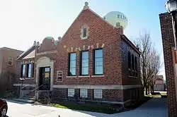 The Former Eldora Public Library is a historic building located in Eldora, Iowa, United States. On December 30, 1901 the Carnegie Foundation agreed to grant the community $10,000 to build a new library building.[2] The Chicago architectural firm of Patton & Miller designed it in the Renaissance Revival style, and it was dedicated on May 11, 1903. The single-story, brick structure is somewhat rare in that its plan is an asymmetrical massing of intersecting gables.[3] The entrance pavilion is located at the intersection of the two masses. The building was listed on the National Register of Historic Places in 1983.[1] In 2010 it was included as a contributing property in the Eldora Downtown Historic District in 2010.[4] The library has subsequently moved to a new facility, and this building has been converted for commercial use.