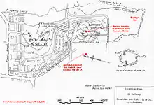 A 1945 map of the fort. The elongated structures shown are temporary World War II buildings.