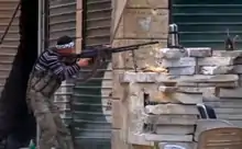 The Free Syrian Army on the local level engages and ambushes the state's shabiha militia[138] and confronts the army during which it encourages defections.[199] Some members of the Free Syrian Army have stated that the organization does not have the resources to occupy and take control of territories, and instead relies primarily on hit and run attacks to prompt the Syrian army into withdrawing.[200] The FSA also uses improvised explosive devices to attack military convoys of buses, trucks and tanks that are transporting supplies and security reinforcements and engages in attack and retreat operations on government checkpoints.[138][201] In neighborhoods opposed to the government, the FSA has acted as a defense force, guarding streets while protests take place and attacking the militias, known as shabiha, which are an integral part of the government's efforts to suppress dissent.[202] In Deir ez-Zor, Al-Rastan, Abu Kamal and other cities the Free Syrian Army, however, engaged in street battles that raged for days with no particular side gaining the advantage.[138] The FSA has also sought international help in bringing down the Assad government. It has asked the international community for arms and the implementation of a no fly zone and naval blockade of Syria[203]