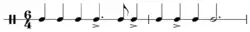 Musical compositions in the galliard form appear to have been written and performed after the dance fell out of popular use. In musical compositions, the galliard often filled the role of an after dance written in 6, which followed and mimicked another piece (sometimes a pavane) written in 4. The distinctive 6 beats to the phrase can still be heard today in songs such as "God Save the Queen".