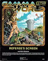 Gamma World Referee's Screen and Mini-Module was designed by Paul Reiche III, with a cover by Erol Otus (1st ed.) or Keith Parkinson (2nd ed.), and was published by TSR in 1981 as a cardstock screen with a 16-page booklet.[2] A second edition was published in 1983 as a cardstock screen with an 8-page booklet.[2]