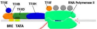 - TFIIF - Stabilizes RNA polymerase interaction with TBP and TFIIB; helps attract TFIIE and TFIIH