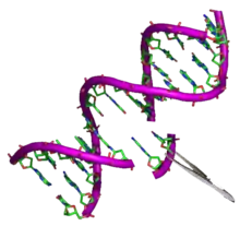 In 2010, scientists at the J. Craig Venter Institute created the first synthetic genome and inserted it into an empty bacterial cell. The resulting bacterium, named Mycoplasma laboratorium, could replicate and produce proteins.[43][44] Four years later this was taken a step further when a bacterium was developed that replicated a plasmid containing a unique base pair, creating the first organism engineered to use an expanded genetic alphabet.[45][46] In 2012, Jennifer Doudna and Emmanuelle Charpentier collaborated to develop the CRISPR/Cas9 system,[47][48] a technique which can be used to easily and specifically alter the genome of almost any organism.[49]