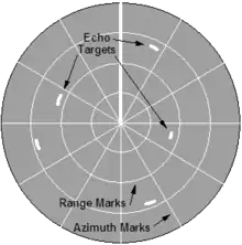 Bearing to the target is indicated by the target's angular position in relation to an imaginary line extending vertically from the sweep origin to the top of the scope. The top of the scope is either true north (when the indicator is operated in the true bearing mode) or ship's heading (when the indicator is operated in the relative bearing mode).