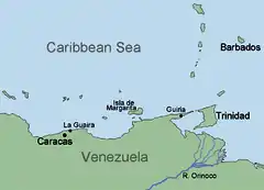 Guyana and Barbados have a portion of maritime which overlap and are disputed with Venezuela,[13] the latter of which claims ownership of the maritime overlapping the first two.[14] In 2008 Barbados sought to place the oil blocks on open market for oil exploration tender but faced a challenge by Venezuela's government in Caracas.[15]