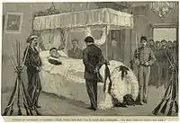 En route to London in 1864 he stopped briefly in Malta, where many admirers visited him in his hotel.[34] Protests by opponents of his anticlericalism were suppressed by the authorities. In London his presence was received with enthusiasm by the population.[35] He met the British prime minister Viscount Palmerston, as well as revolutionaries then living in exile in the city. At that time, his ambitious international project included the liberation of a range of occupied nations, such as Croatia, Greece, and Hungary. He also visited Bedford and was given a tour of the Britannia Iron Works, where he planted a tree (which was cut down in 1944 due to decay).[36]