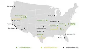 - Kansas City, Kansas – On March 30, 2011, Kansas City, Kansas, was selected from over 1,100 applicants to be the first Google Fiber community.[6]