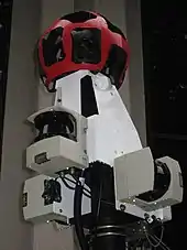 - R5: uses a ring of eight 5-megapixel CMOS cameras by Elphel[34][35] with custom low-flare lenses, plus a camera with fisheye lens on top to capture upper levels of buildings.