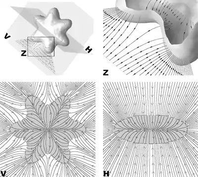 where is the Laplacian operator. It is instructive to examine the form of the equations in (2). Each is a partial differential equation that the components and of must satisfy. If the magnitude of the edge gradient is small, then the solution of each equation is guided entirely by Laplace's equation, for example , which will produce a smooth scalar field entirely dependent on its boundary conditions. The boundary conditions are effectively provided by the locations in the image where the magnitude of the edge gradient is large, where the solution is driven to agree more with the edge gradients.