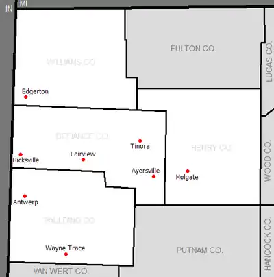 The Green Meadows Conference is an OHSAA athletic league located in northwest Ohio. The eight member schools are all located in one of four counties: Henry County, Defiance County, Paulding County, or Williams County.