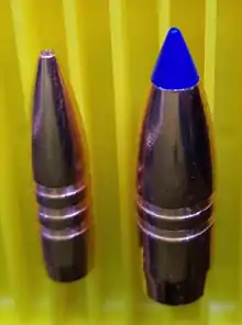 Green bullet, green ammunition or green ammo are nicknames for a United States Department of Defense program to eliminate the use of hazardous materials from small arms ammunition and from small arms ammunition manufacturing. Initial objectives were elimination of ozone-depleting substances, volatile organic compounds, and heavy metals from primers and projectiles. These materials were perceived as causing difficulties through the entire life cycle of ammunition. The materials generated hazardous wastes and emissions at manufacturing facilities and use of ammunition caused contamination at shooting ranges. Potential health hazards made demilitarization and disposal of unused ammunition difficult and expensive.[2]