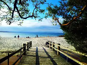 Greenpatch is located on Aboriginal Land within Booderee National Park. It is located in close proximity to HMAS Creswell and Jervis Bay Village. Greenpatch beach is approximately 1.5 kilometres (0.93 mi) long. Guinness World Records reports Jervis Bay as having the whitest sand in the world.[1]