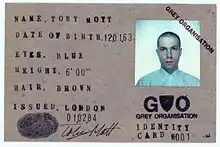 After moving to Bow in East London, Toby Mott and childhood friends Daniel Saccoccio, Tim Burke and Paul Spencer formed Grey Organisation in 1982 as a response to the "prevailing Thatcherite free market consumerist culture".[7] GO's origins can be found in the Punk movement and 1970s' youth politics, the quartet having been members of the Anarchist Street Army.[8] They eschewed the more common anarcho-aesthetic opting instead to dress uniformly in grey suits, with heads shaved in a parody of yuppie and Soviet "corporate monoculture".[7]