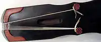 Around 2007, a new set of strings were produced made of mostly a nylon core coiled with nylon like the metal-nylon strings, possibly in imitation of Western catgut strings.[2] The sound is similar to the metal-nylon strings but without the metallic tone to them (one of the main reasons why traditionalists do not like the metal-nylon strings). The nylon strings are able to be turned to standard pitch without breaking and can sustain their tuning whatever the climate unlike silk.