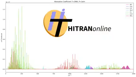 HITRAN is the worldwide standard for calculating or simulating atmospheric molecular transmission and radiance from the microwave through ultraviolet region of the spectrum.[2] The current version, HITRAN2016,[3] contains 49 molecules in the line-by-line portion of HITRAN and, with their respective isotopologues, totals 126 isotopologues in this section of the database.[3] These data are archived as a multitude of high-resolution line transitions, each containing many spectral parameters required for high-resolution simulations.