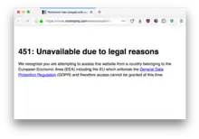 After introduction of the GDPR in EEA many websites located outside EEA started to serve HTTP 451 instead of trying to comply with this new privacy law.[11]
